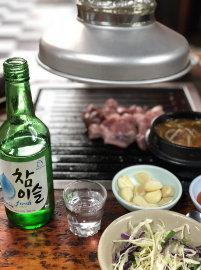고기에는 한국 전통 술인 소주가 빠질 수 없습니다. ‘짠!’하며 건배하는 것도 하나의 문화 체험입니다. - 고기는 너무 오래 굽지 않기