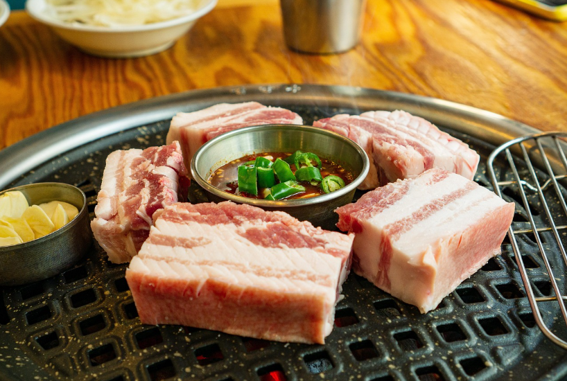 - 삼겹살 (Samgyeopsal) – 한국인들이 가장 사랑하는 돼지고기 부위입니다. 두툼한 지방층이 풍부해 고소한 맛을 자랑합니다.